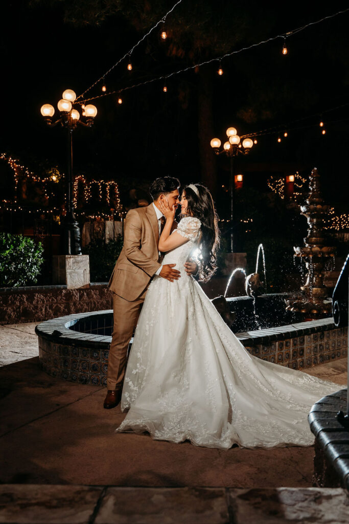 Later in the evening, twinkle lights brought a new layer of magic to the venue. The soft illumination added depth and warmth, allowing for intimate nighttime portraits that felt cinematic and full of emotion.