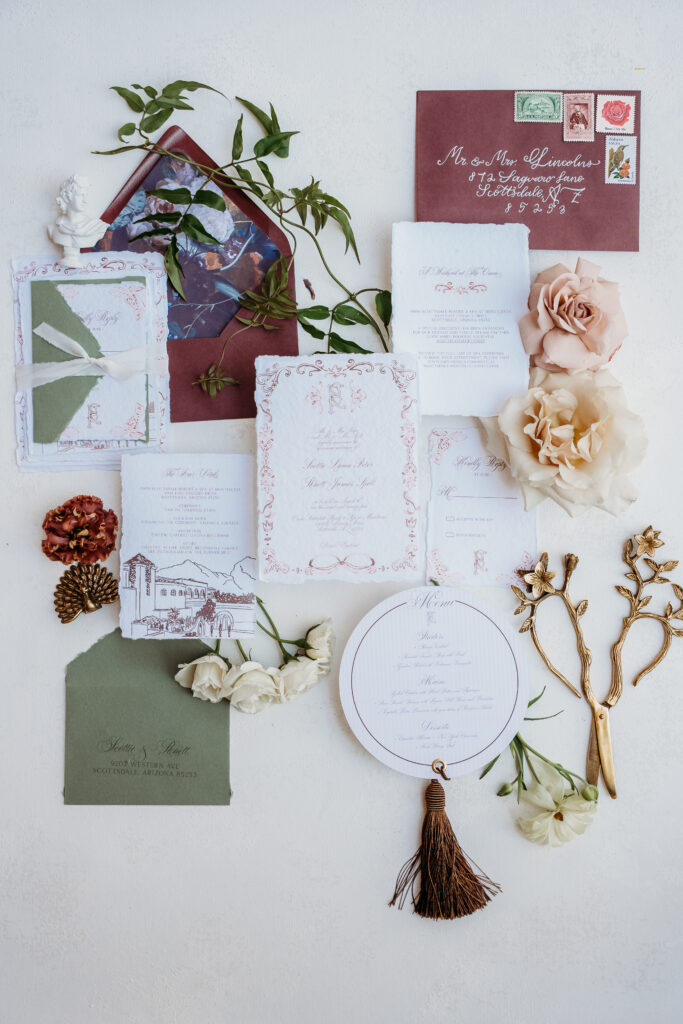 Stationery + Day-of Paper: @fossilweddinginvitations
