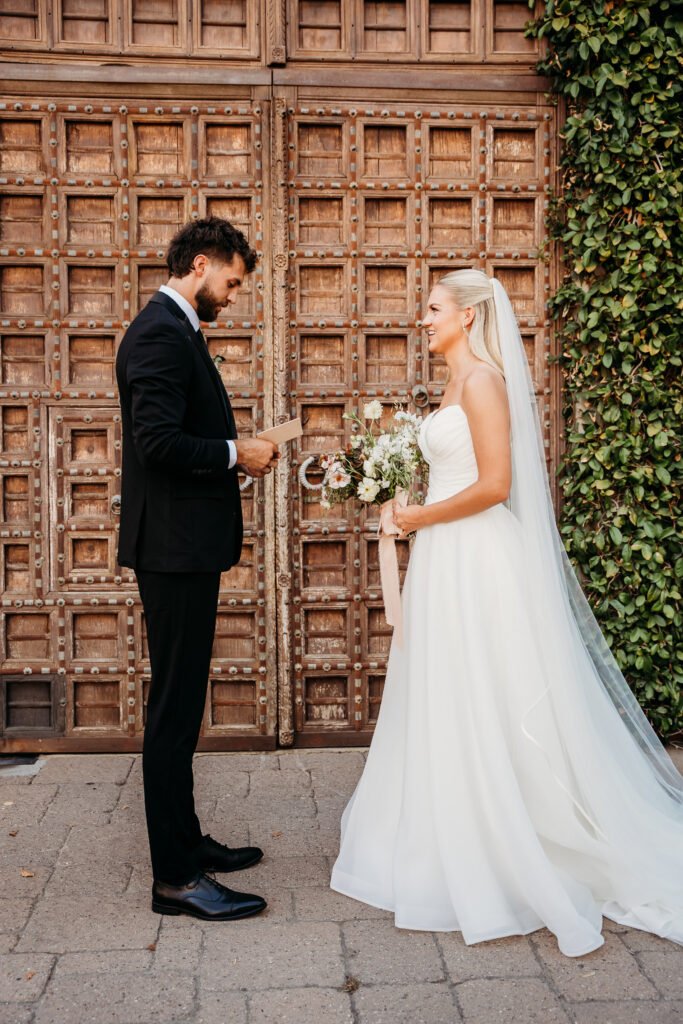A first look also creates the ideal setting to share private vows. You can read your personal words to each other in a quiet, emotional space—without the pressure of guests listening in. It becomes an incredibly meaningful experience, and it allows you to be fully present with each other while still capturing those raw, authentic moments on camera.