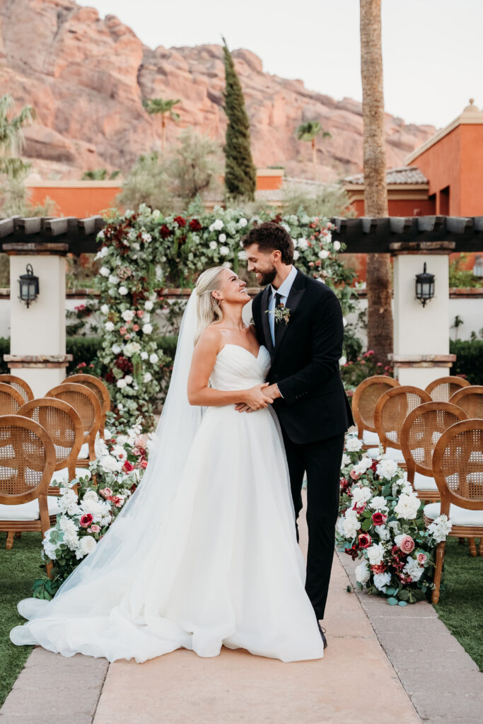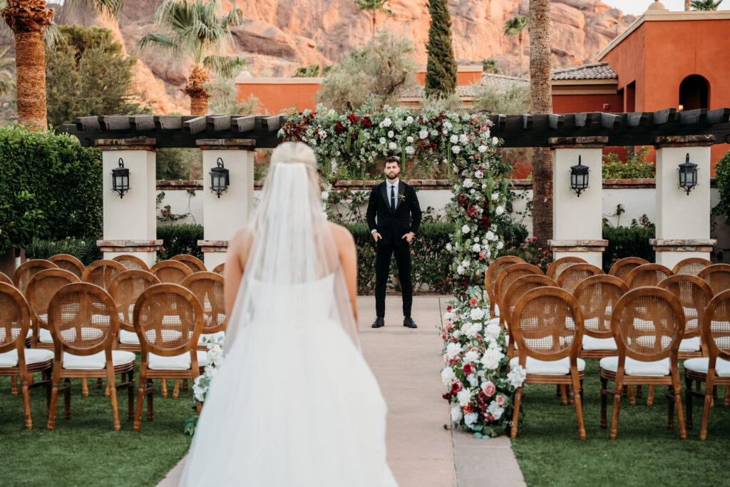 One of the most common questions couples ask when planning their wedding day timeline is: “Should we do a first look?” As a wedding photographer, I’ve seen both sides—emotional first looks before the ceremony and traditional aisle reveals—and the truth is, there’s no one-size-fits-all answer. It all comes down to what feels right for you as a couple. This editorial at Omni Scottsdale Resort & Spa at Montelucia is a beautiful example of how a wedding day can flow with a first look—giving you more time to be present, soak it all in, and create space for intentional, relaxed photos throughout the day.